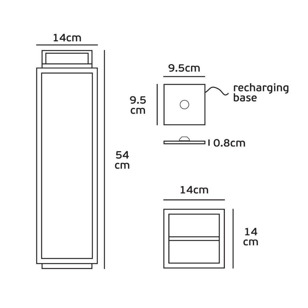 NOG-MOS Φορητό επιδαπέδιο/επαναφορτιζόμενο LED φανάρι εξωτερικού χώρου, 2x2200mA μπαταρίες λιθίου, 2.2W, 3000K, 180lm, CRI>85, IP54, 14x14x54cm, dimmable, μαύρο